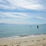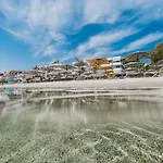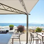 Das Margarita Sea Side Kallithea verfügt über einen gemeinsamen Strand mit Lounge-Sesseln und Sonnenschirmen.